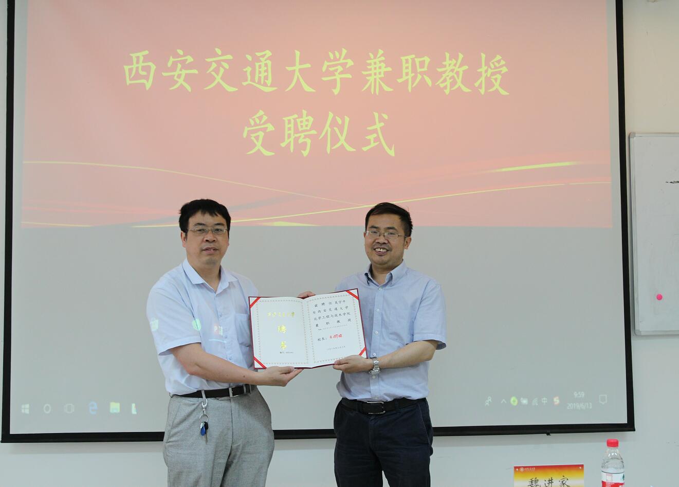 6月13日,南京工业大学能源学院院长吴宇平教授受聘西安交通大学兼职教授仪式在国产直播106会议室举行。国产直播党政领导、学科负责人、师生代表参加受聘仪式。仪式由国产直播院长魏进家主持。