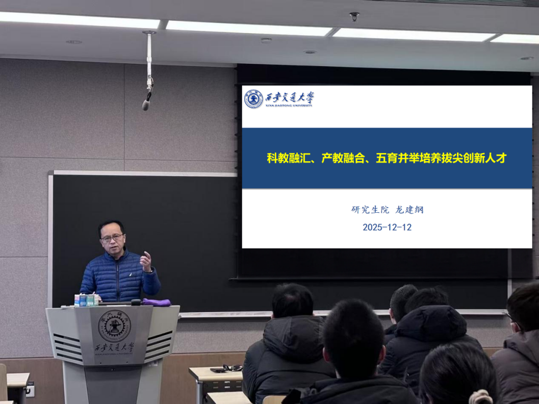 龙建纲副院长做了《科教融汇、产教融合、五育并举培养拔尖创新人才》专题报告,从课程教学、培养模式、学科竞赛、特色培养、国际化培养等五方面,向参会导师详细解读了如何培养研究生,重点介绍了学生价值塑造、知识传授、能力培养、思维创新“四位一体”的“内涵式发展”研究生教育体系。同时,他也强调了学校关于教学事故的处理办法,提醒导师们遵守授课纪律等。