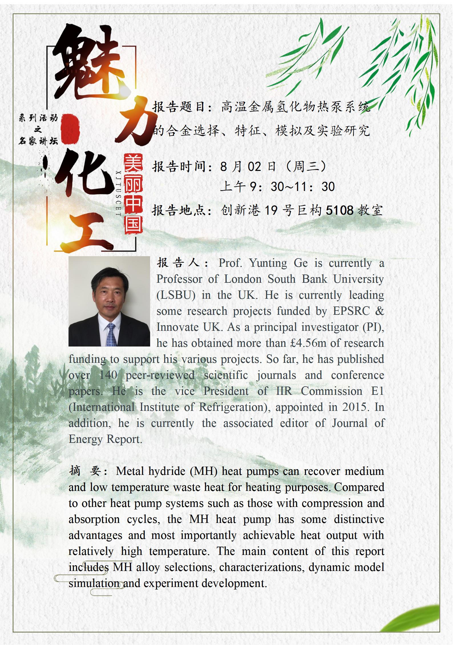 报告人 Prof. Yunting Ge