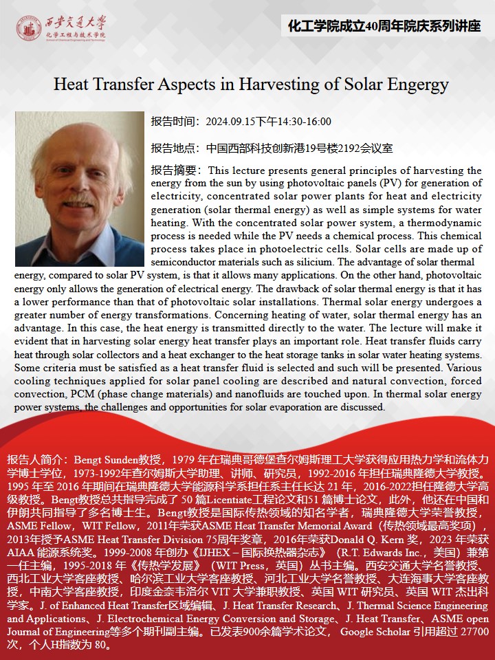2024年9月15日下午14:30-16:00隆德大学教授Bengt Sunden报告